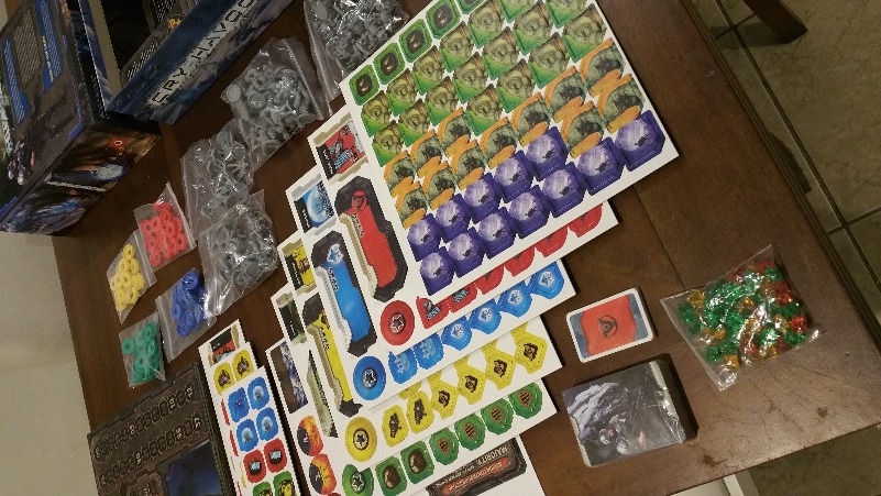 Em cima dos marcadores coloquei as cartas de habilidade. Cry Havoc