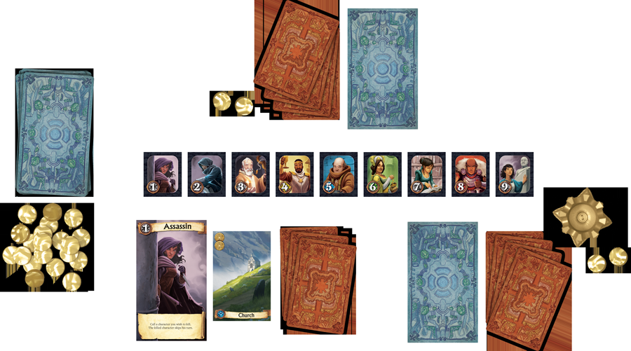 Citadels: Cartas, Tokens, Moedas e Marcador de Rei Citadels (2016 edition)