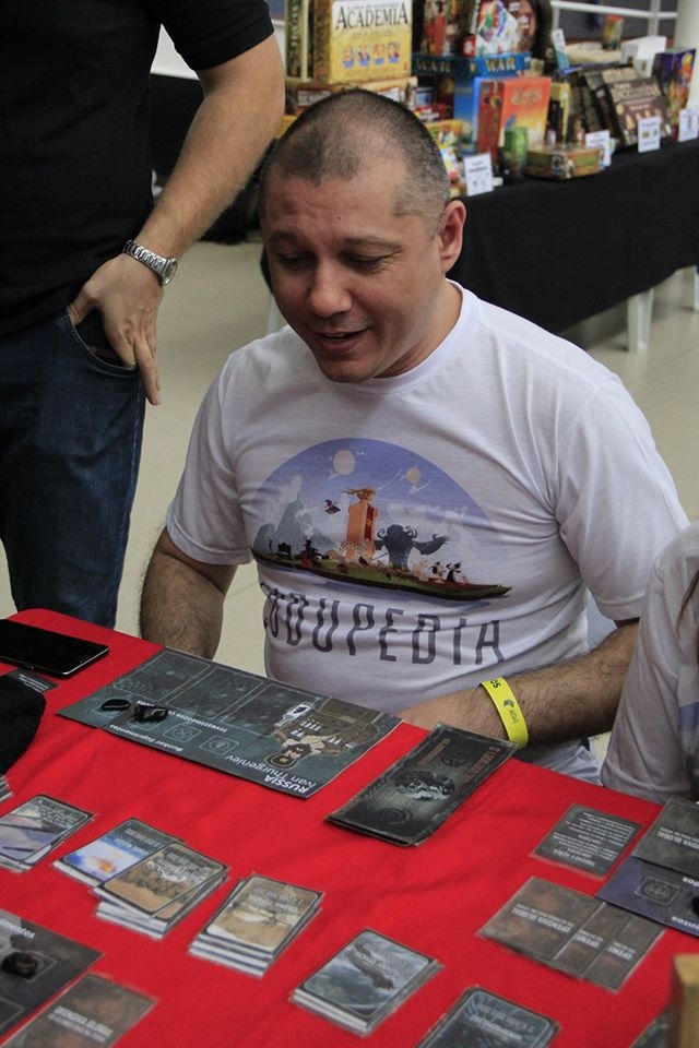 Ricardo Gama, atônito após levar um Ataque Nuclear lançado pelo Vegeta nas primeiras rodadas da partida, hehehe. Playtest feita no evento Além do Muro (20/08/2016) Ofensiva Global - Os últimos dias na Terra