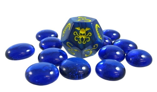 Conjunto com dado e marcadores de sanidade azuis Cthulhu Dice