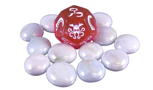 Conjunto com dado rosa e marcadores de sanidade brancos Cthulhu Dice