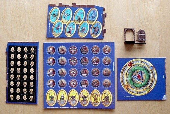 Marcadores e fichas ainda no papelão Advanced HeroQuest