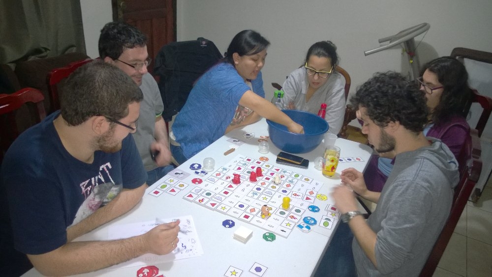 Partida de adultos e sem regras de salva-guarda. Da esq. para a dir.: Guilherme Lopes, Carlos Magno Galindo (magnomct), Vanessa Mayumi Satsuma (Mayumi), Carla Amorim Patriani, Bárbara Cunha de Almeida e Willian Ricciardi Fernandes (willrfernandes). Monstrols