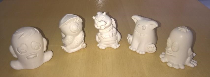 Modelos de Monstrols (peões) originais em cera enviados para processo em cera perdida através do qual foram feitos os moldes finais para a produção industrial de cópias em vinil. Monstrols