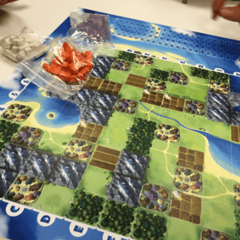 Close no tabuleiro com os bunnyples. Bunny Kingdom