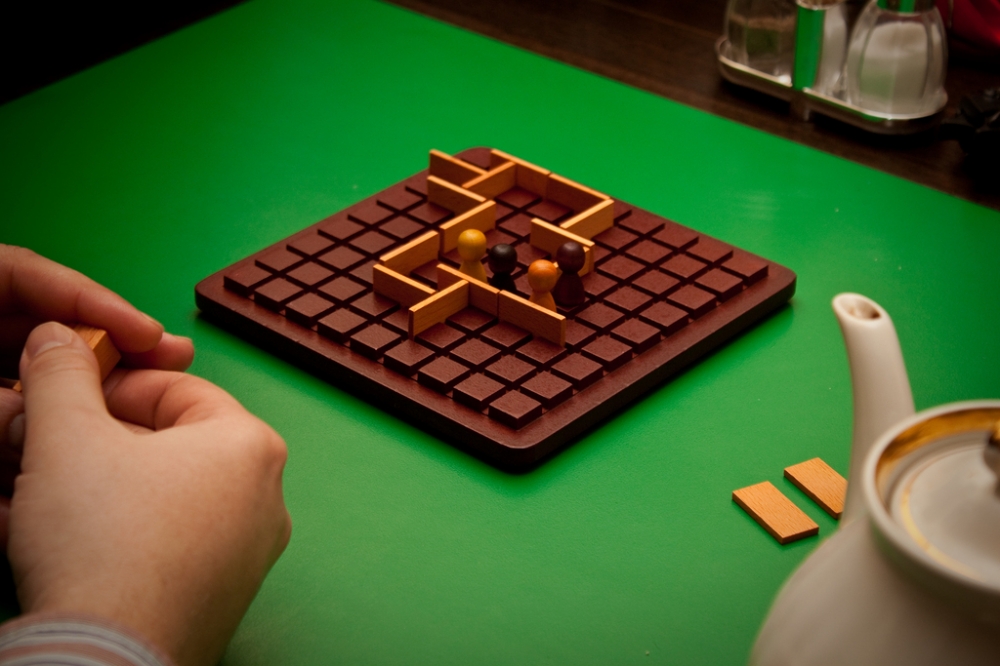 Partida em andamento com 4 jogadores (versão Mitra) Quoridor