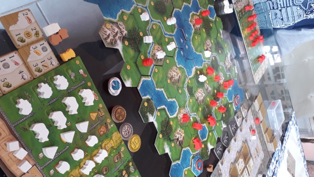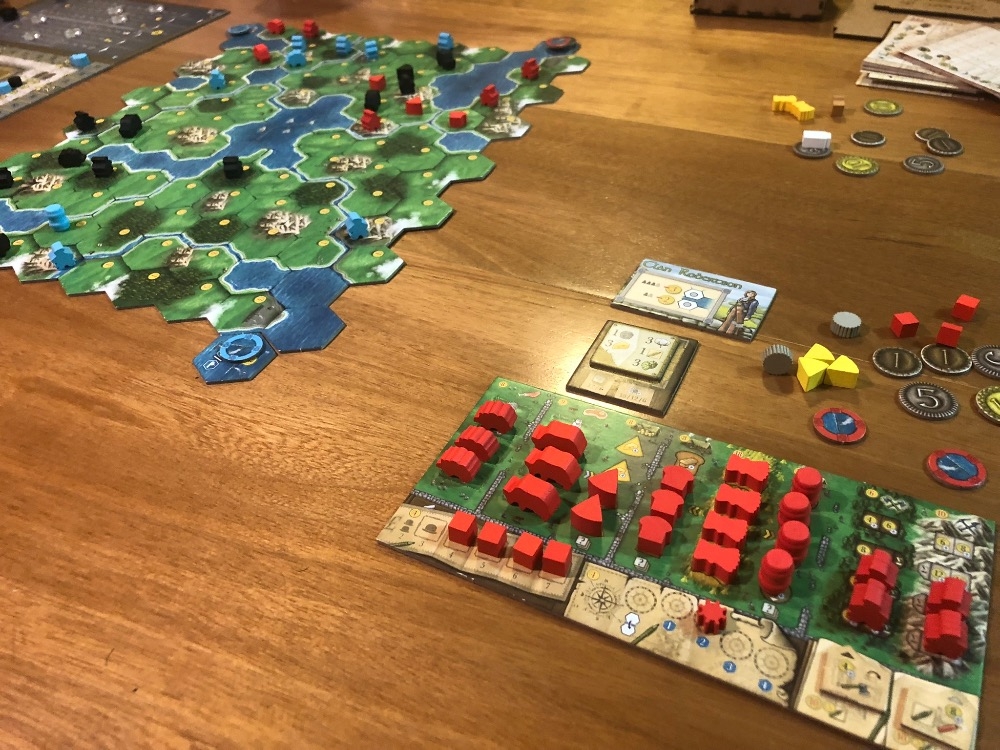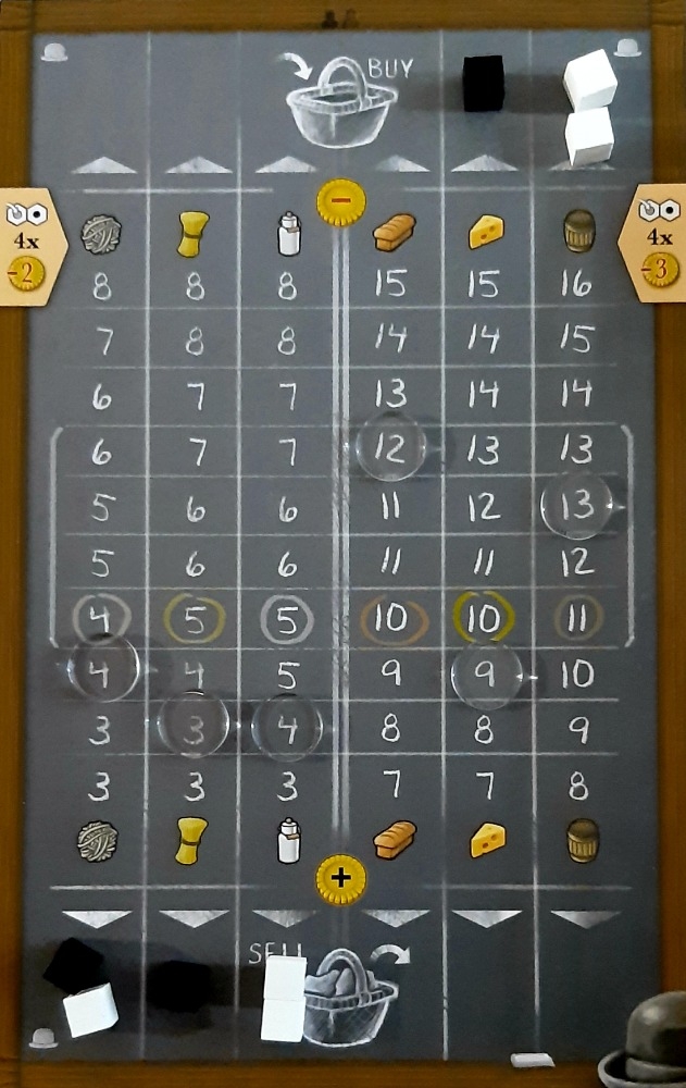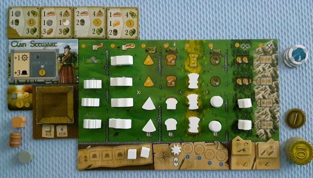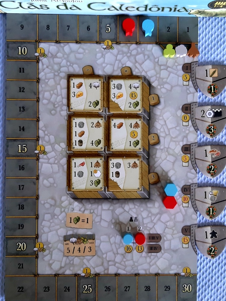 Tabuleiro de contratos e pontuação Clans of Caledonia