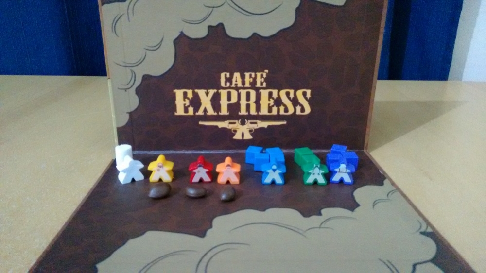 Meeples e marcadores do jogo Café Express