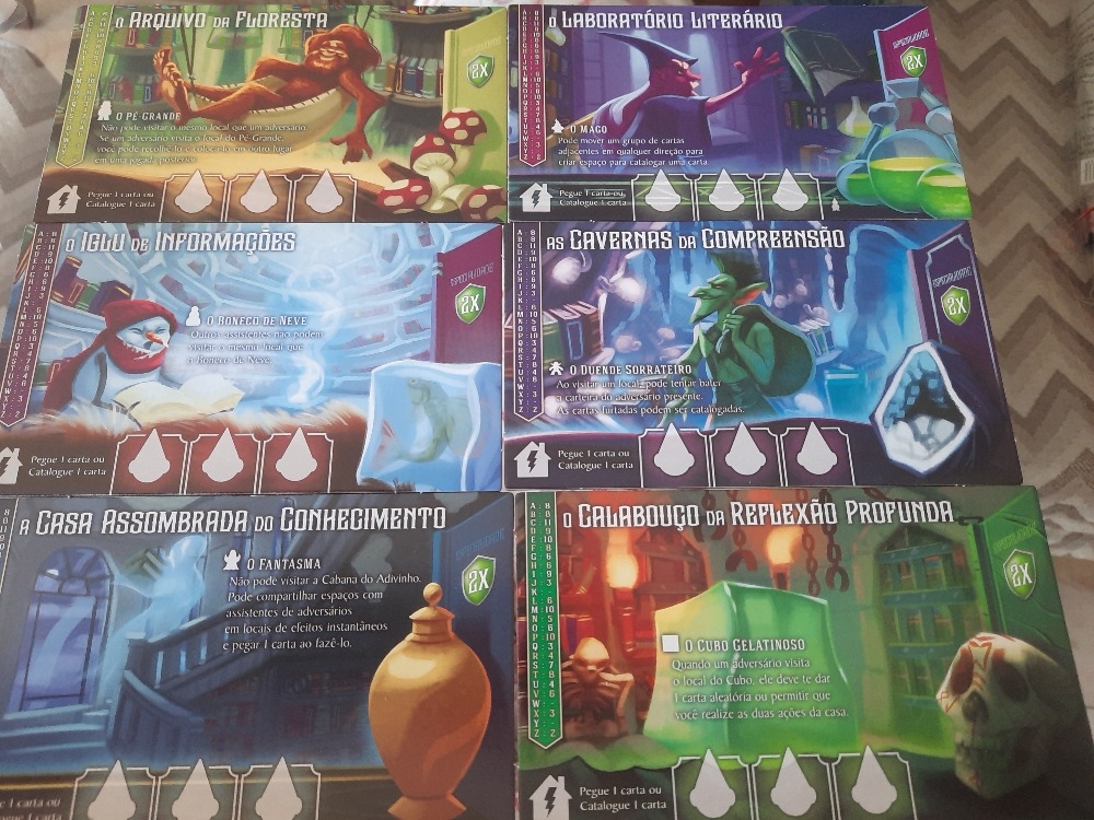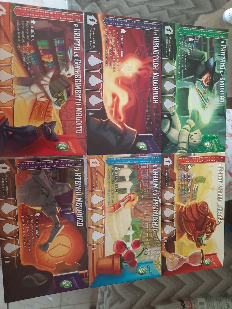 Personagens 1: o Golem do Lixo é um dos melhores do jogo (principalmente para solo e 2 jogadores), o Imp de fogo é terrível pro modo solo e o Autômato tem regras bizarras que não fazem sentido (é como se ele só funcionasse na sua biblioteca, no modo solo, Ex Libris