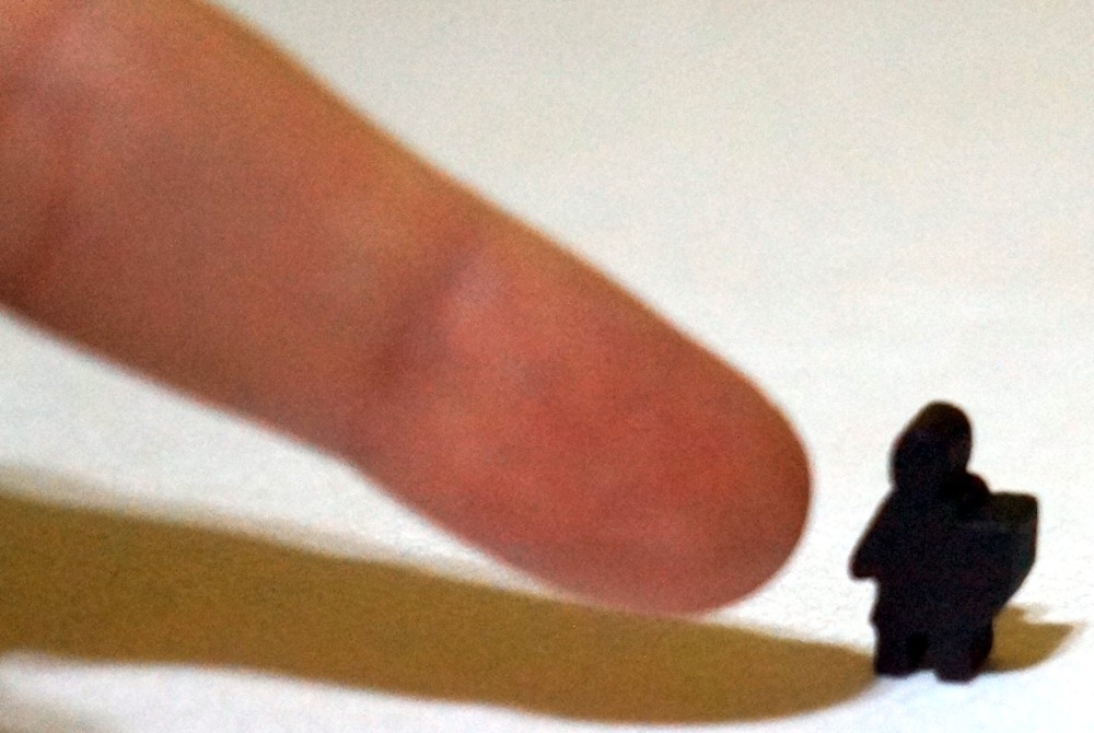 Os meeples de cavaleiros são bem pequenos. Apontei o dedo para mostrar o tamanho. Queendomino