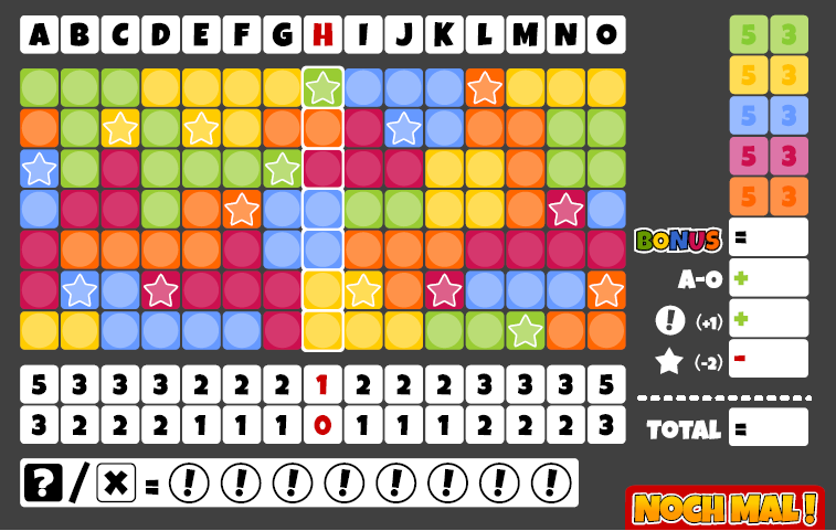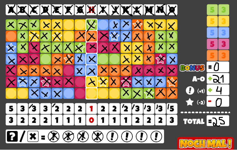 Exemplo de Folha de Jogo ao fim de partida solo. Encore!