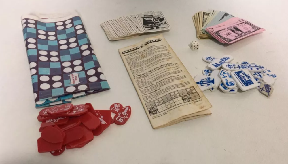 Componentes organizados na caixa Guerra é Guerra