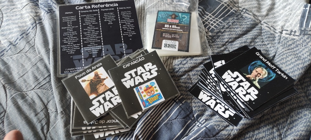 Cartas bem vagabundas e de tamanho sem noção. Acho que as sleeves 85x85 talvez caiba Who am I?