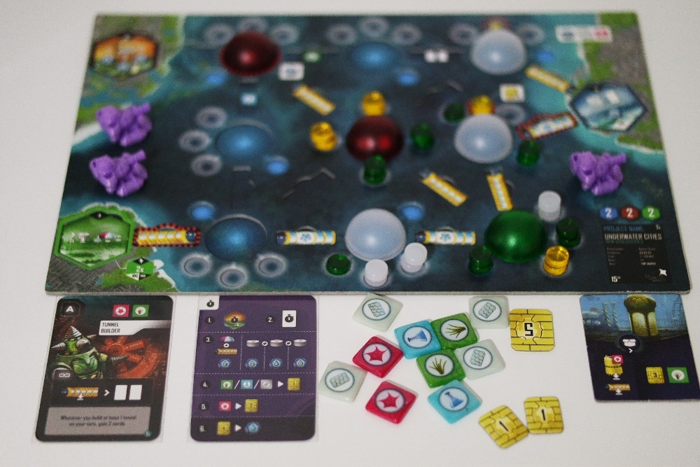 Componentes e tabuleiro Underwater Cities