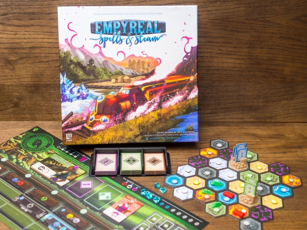 Componentes (Imagem: Doctor Meeple) Empyreal: Spells & Steam