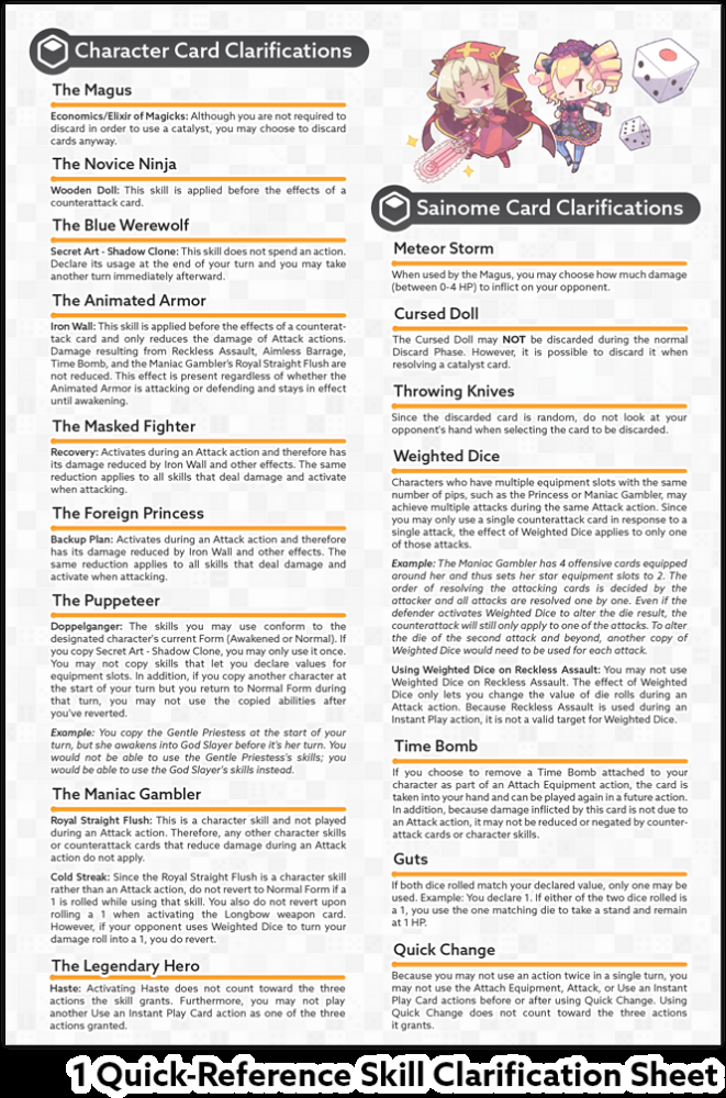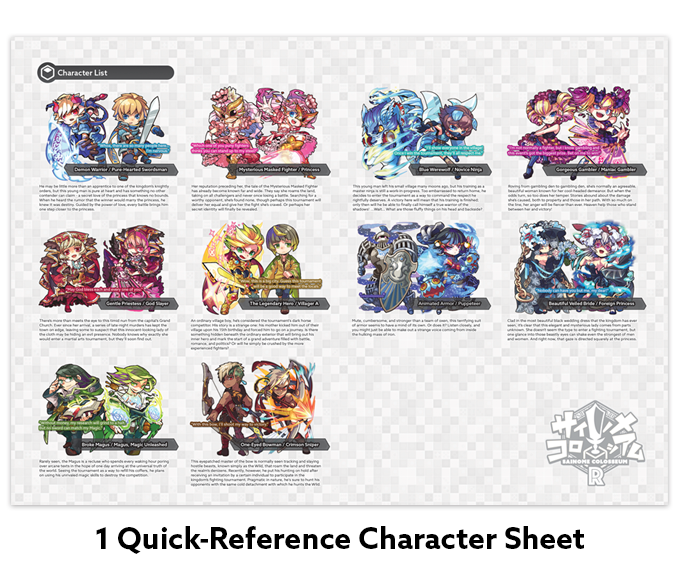 Folha de referência rápida dos personagens Sainome Colosseum R