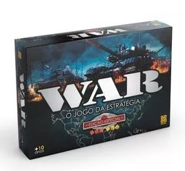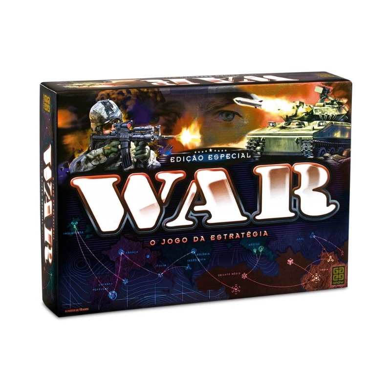 Versão de luxo! Jogue com miniaturas de soldados e tanques representando os exércitos, copo para lançamento de dados, tabuleiro maior e embalagem diferenciada. WAR: Edição Especial