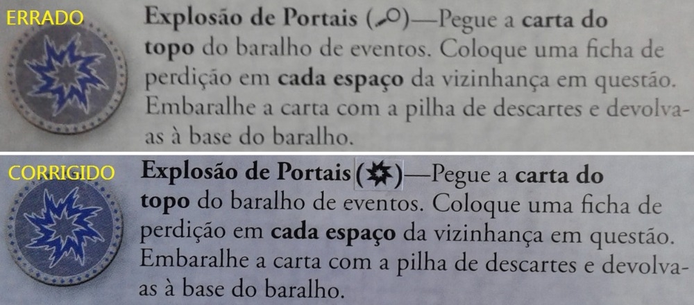 Guia de Referência. Página 24. Explosão de Portais. O ícone está errado. www.ludopedia.com.br/topico/51852/errata-de-arkham-horror-3-edicao-pt-br Arkham Horror (Third Edition)