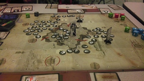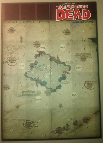Disposição dos componentes no tabuleiro The Walking Dead: The Board Game
