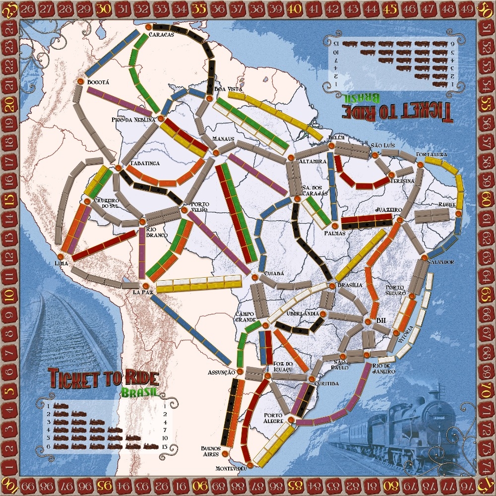 Mapa atualizado do Brasil, para jogar com os vagões e cartas de vagões do TTR USA. Ticket to Ride
