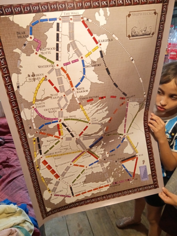 Trens cumprindo rotas e cartas disponíveis para compra Ticket to Ride