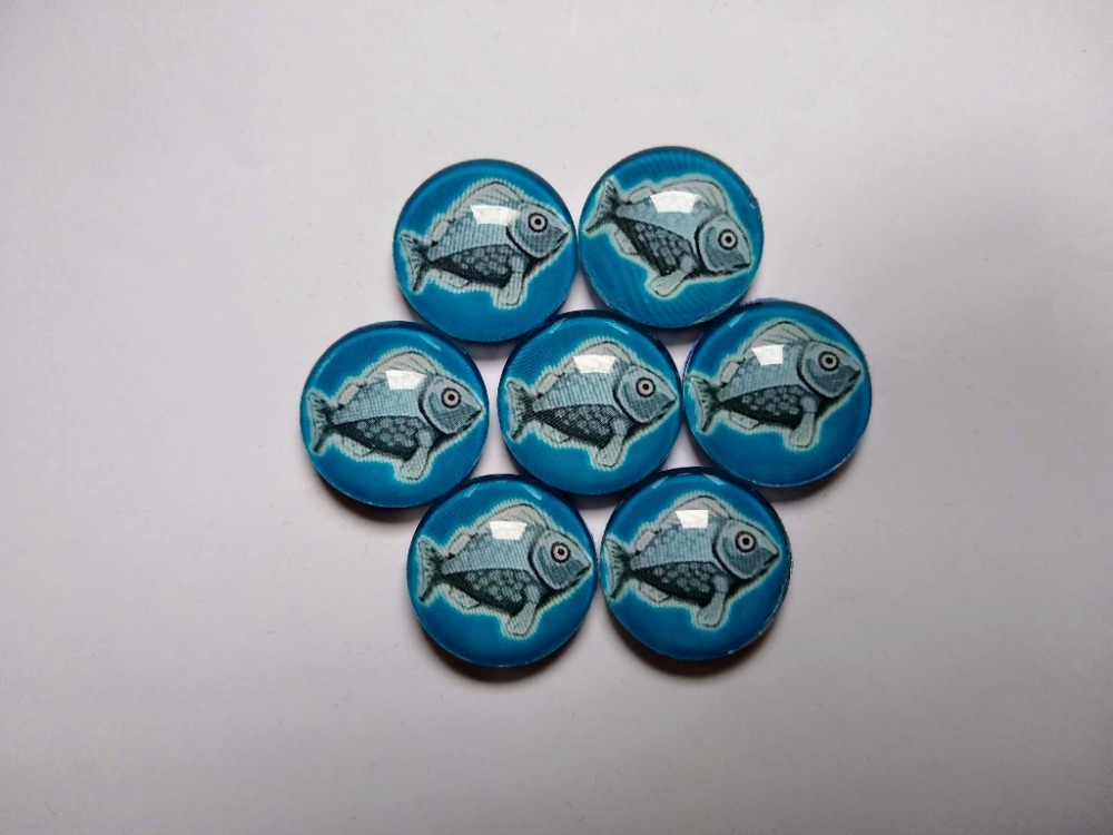 Tokens de um peixe com cabochão de vidro de 20mm de diâmetro. The Isle of Cats