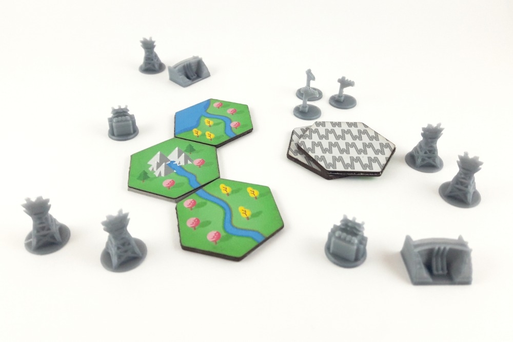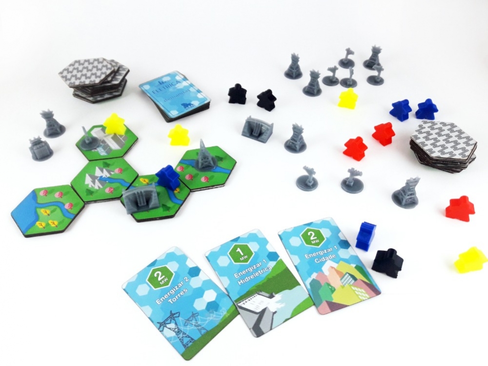 Componentes: Tiles, Cartas, Meeples e Miniaturas Eletrika
