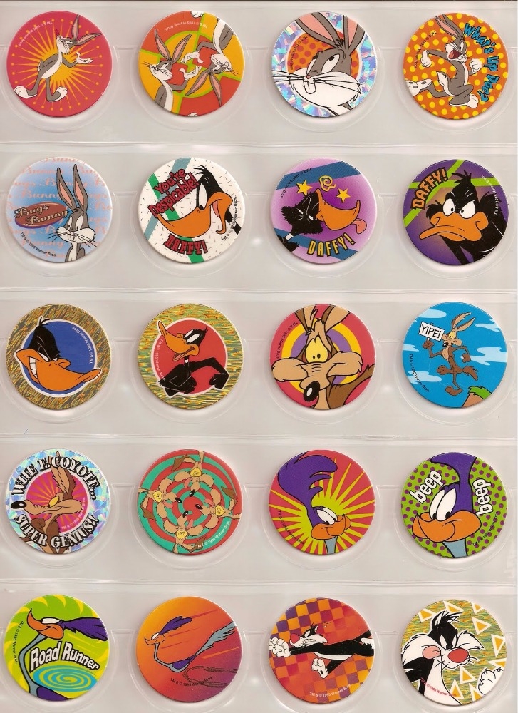 Tapetazos da Coleção Pernalonga e seus amigos, da Elma Chips, Década de 90. Pogs