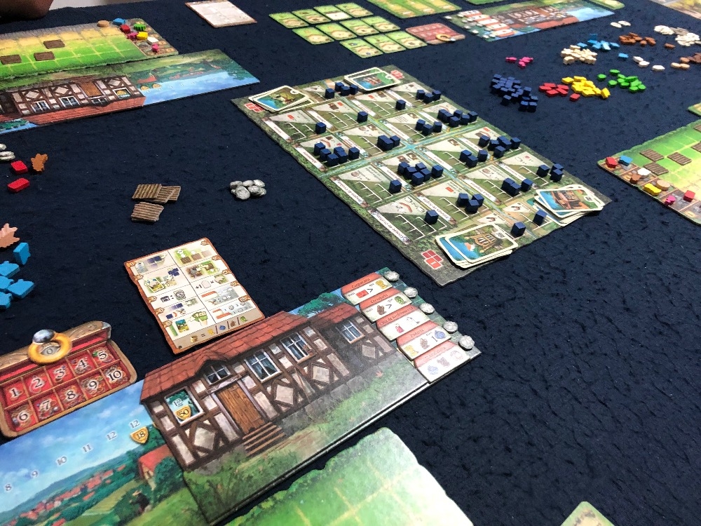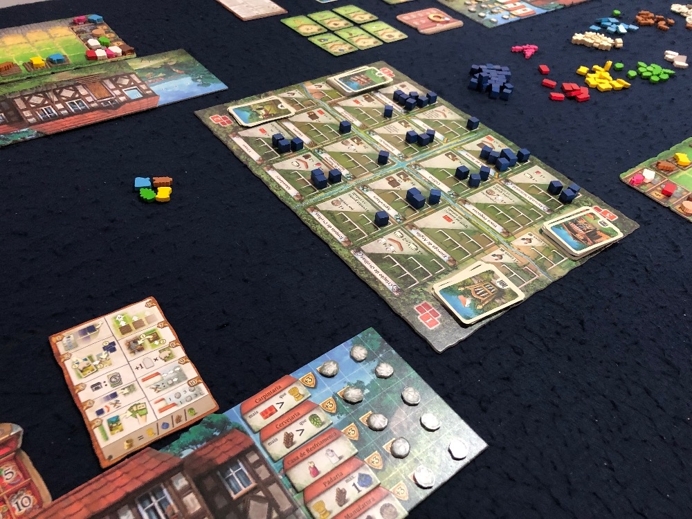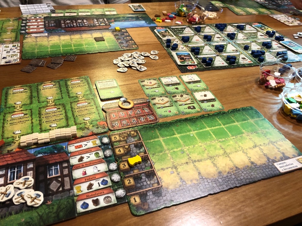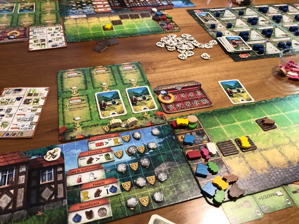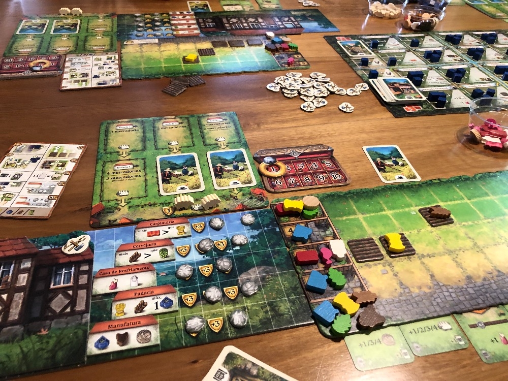 Tabuleiro preparado para iniciar a partida Hallertau