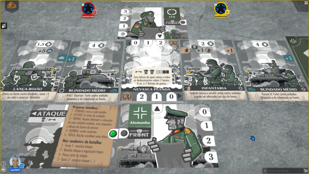 Uso de uma tática para uma batalha com a própria carta marcando o uso. Front Total