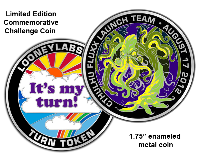 Cthulhu Fluxx Launch Kit: Token de Turno: em formato Moeda de metal para promover o jogo para logistas! Cthulhu Fluxx