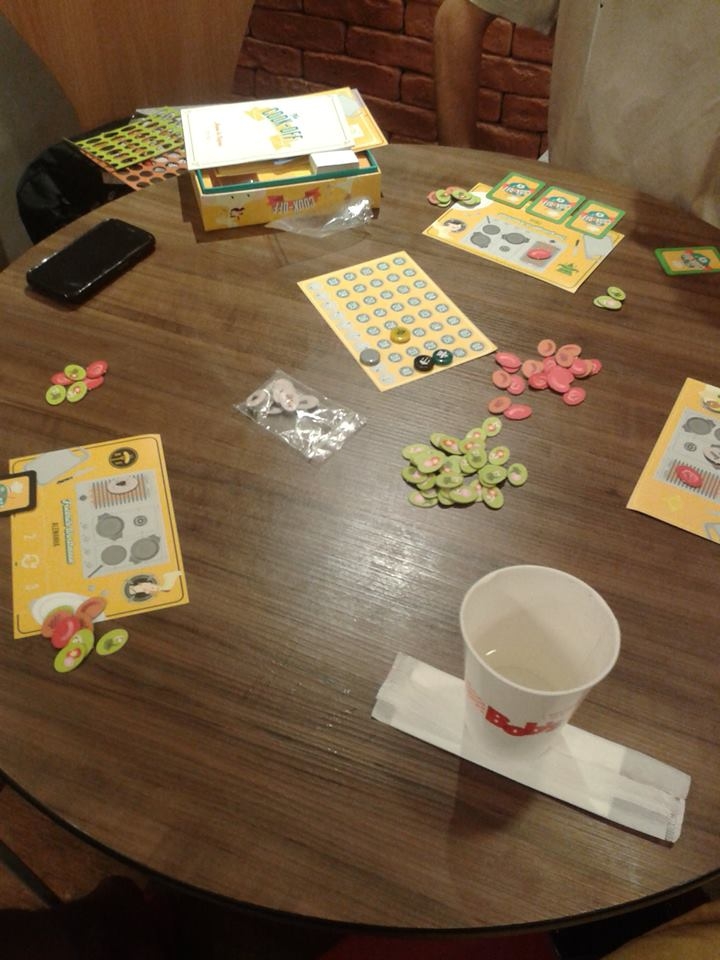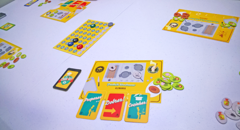 Ah, dúvida cruel! O que fazer... (Playteste na JogaSampa do Bob's - versão não finalizada - repare que as cartas ainda estavam em inglês!) The Cook-off