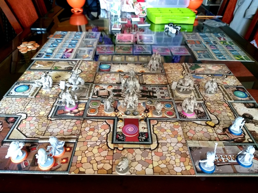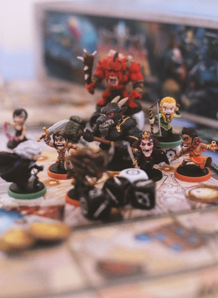 Miniaturas pintadas sobre o tabuleiro Arcadia Quest