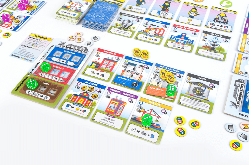 Componentes (Imagem: Deep Water Games) Fantastic Factories: Manufactions