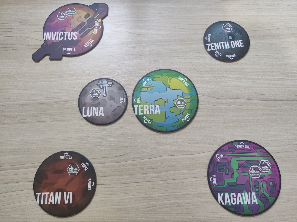 Peças de planeta. Formam o tabuleiro central. Deep Space D-6: Armada