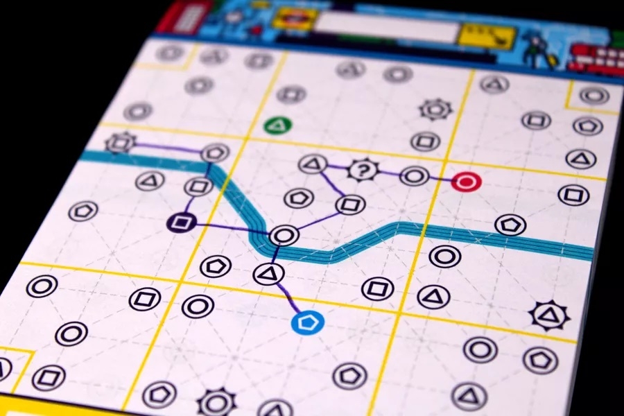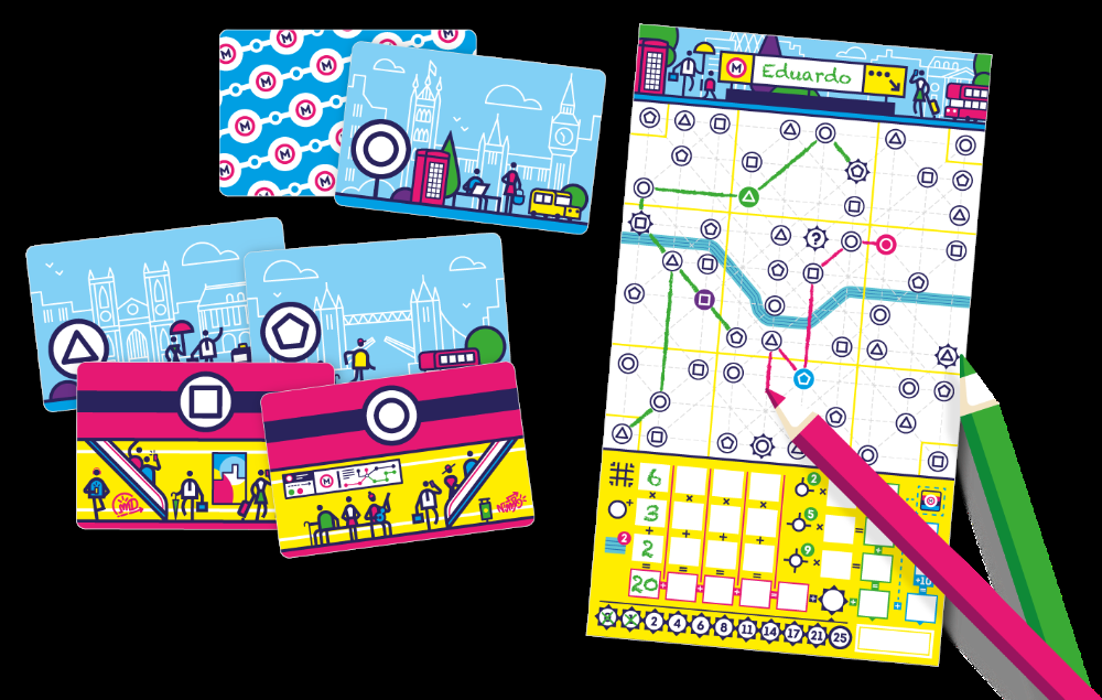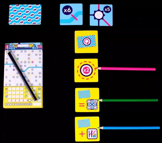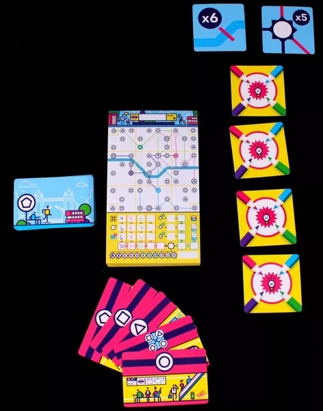Visão Geral de como o jogo fica na mesa, partida solo. Next Station: London