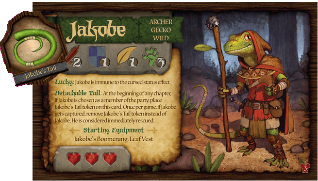 Carta de herói e ficha de Jakobe Mice and Mystics: Downwood Tales