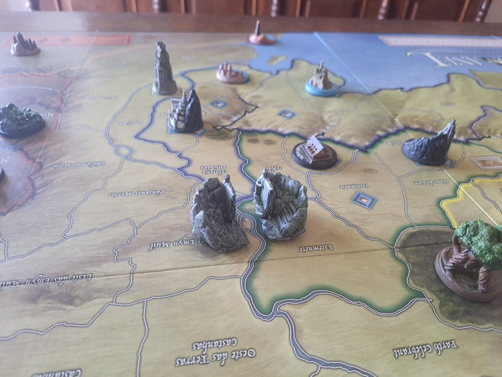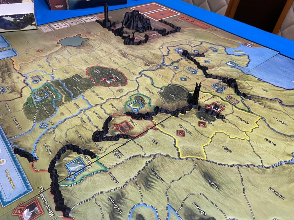 Playmat em tamanho Deluxe que comporta a expansão Guerreiros da Terra Média e com indicadores de Setup Inicial War of the Ring (Second Edition)