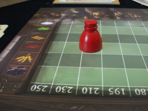 Visão do jogador; em primeiro plano painel de influencias e em segundo trilha da bolsa de valores. Hab & Gut