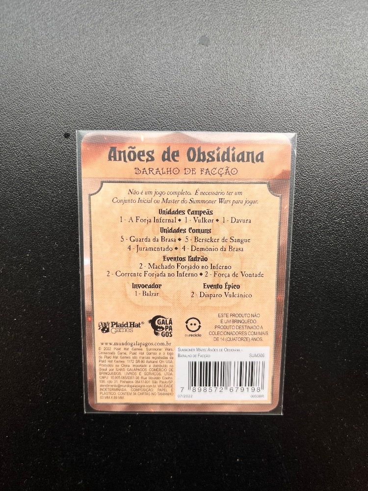 Caixa do jogo Summoner Wars (Second Edition): Obsidian Dwarves Faction Deck