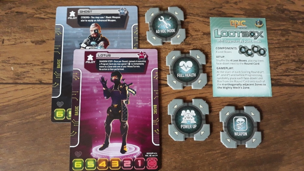 Pilotos (Lotus e Ghost) Tiny Epic Mechs: Loot Box & Spot Light Mini Expansion