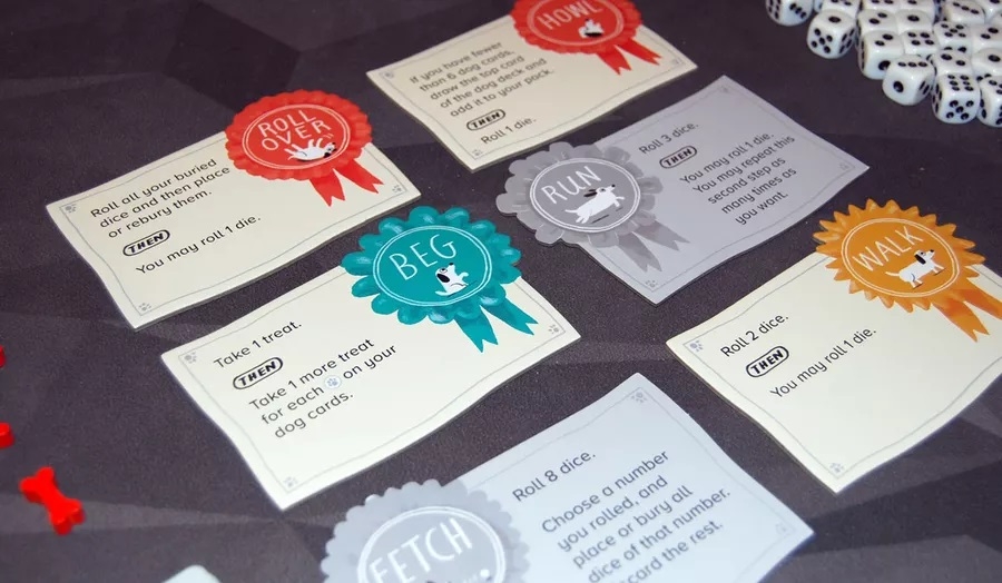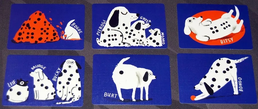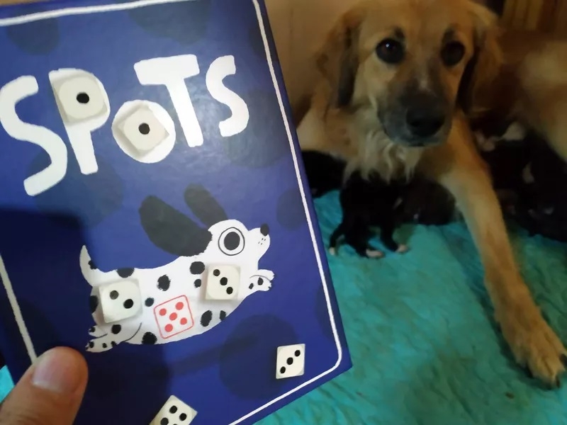 Partida solo finalizada e detalhes das cartas de cachorrinho. Spots