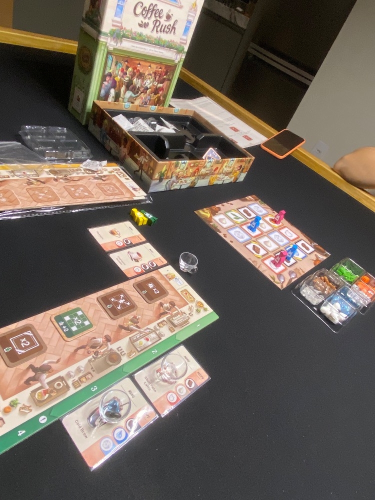 Partida em andamento. Finalmente encontrei uma utilidade para as bandejas que vem na expansão ? Coffee Rush