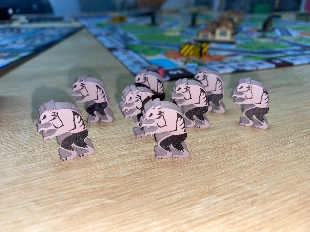 Versão Protótipo - Foto por @rainbow_meeple O Vale dos Monstros II - A Invasão da Cidade