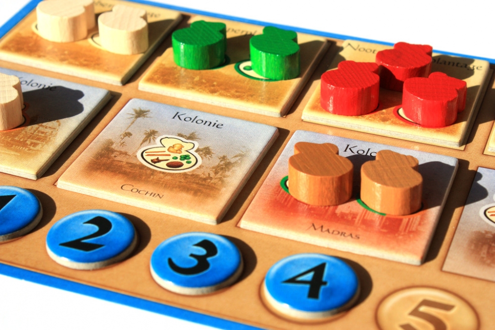 Caixa do jogo e peças de madeira. Goa: A New Expedition
