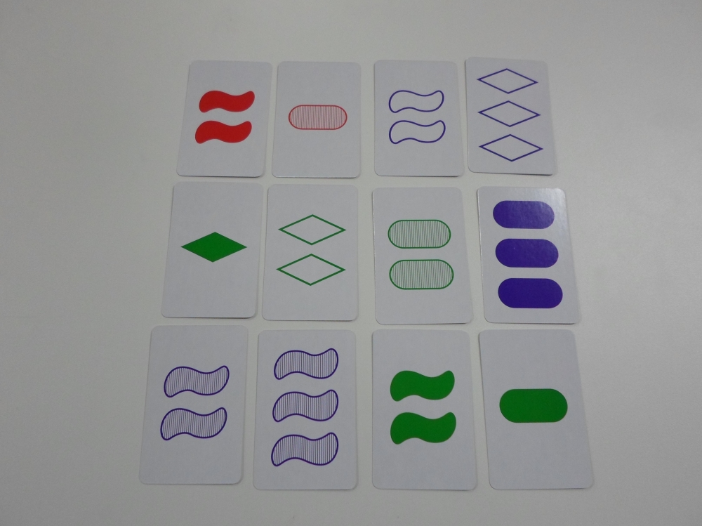 Exemplo de set (ponto), onde símbolos, números, cores e preenchimentos são diferentes. Set