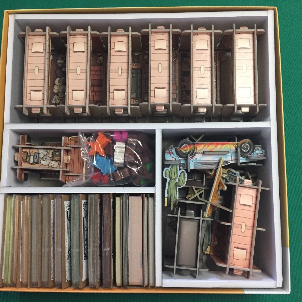 Insert com o jogo base, as duas expansões e o delorean Colt Express