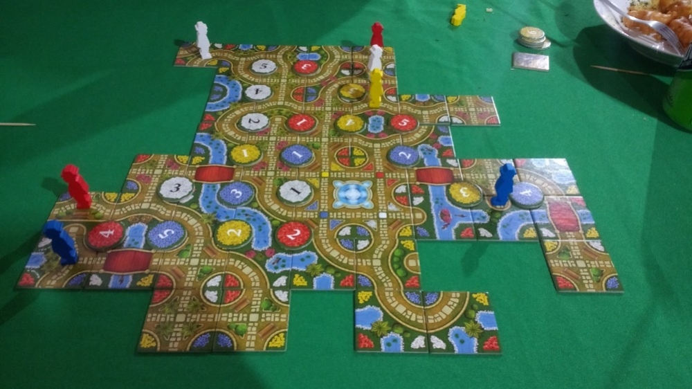 Verão PnP finalizada. Peças/tiles em cartonado rígido e fundo em papel prata. Tiles circulares de canteiro de flores em sulfite impresso plastificado. Gardens