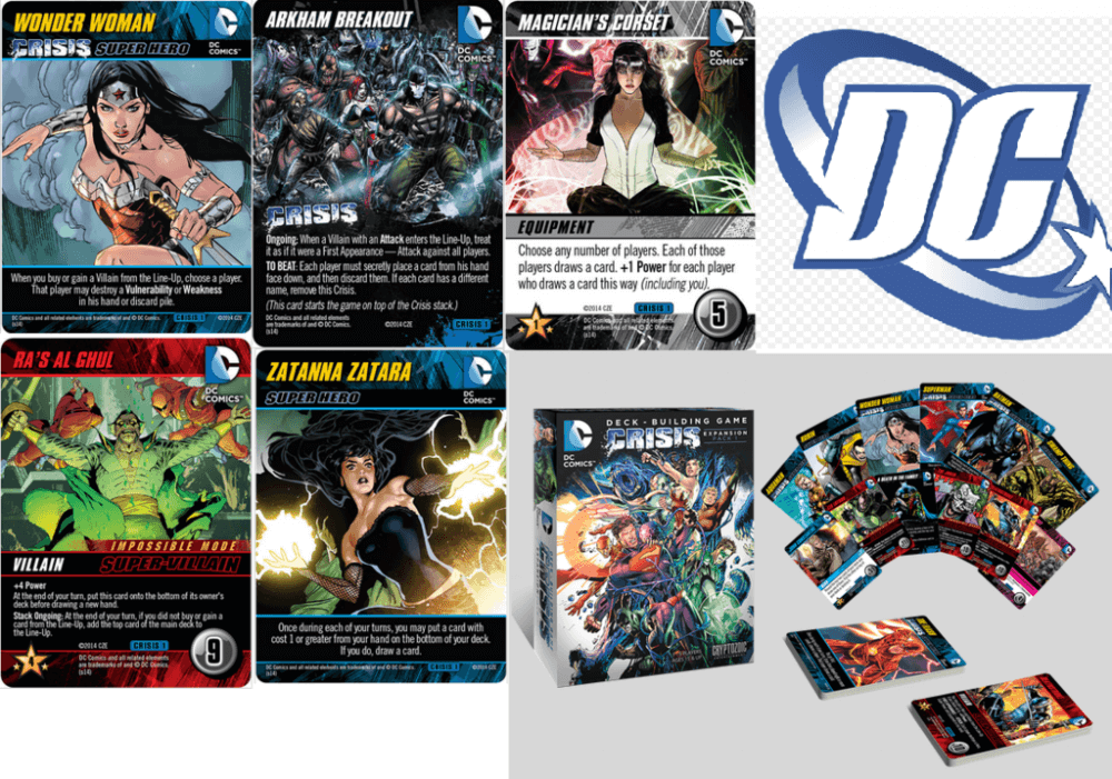 Exemplo de cartas DC Comics Deck-Building Game: Crisis Expansion (Pack 1)