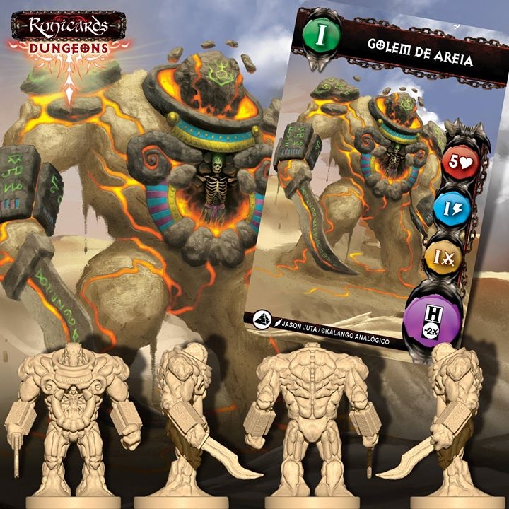 Golem de Areia - Arte, carta e miniatura Runicards Dungeons: Desafios do Deserto